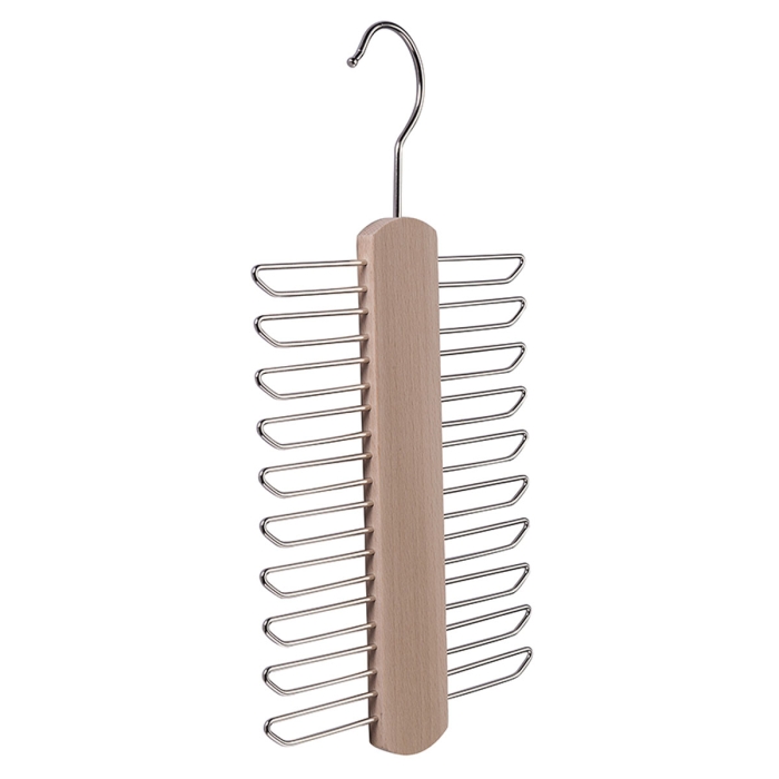 Krawattenbügel natur roh ✓ aus Buchenholz gefertigt ✓ natur roh geschliffen ✓ die Höhe beträgt 31 cm ✓ Haken silberfarbig glänzend ✓ Krawattenhalter für bis zu 20 Krawatten