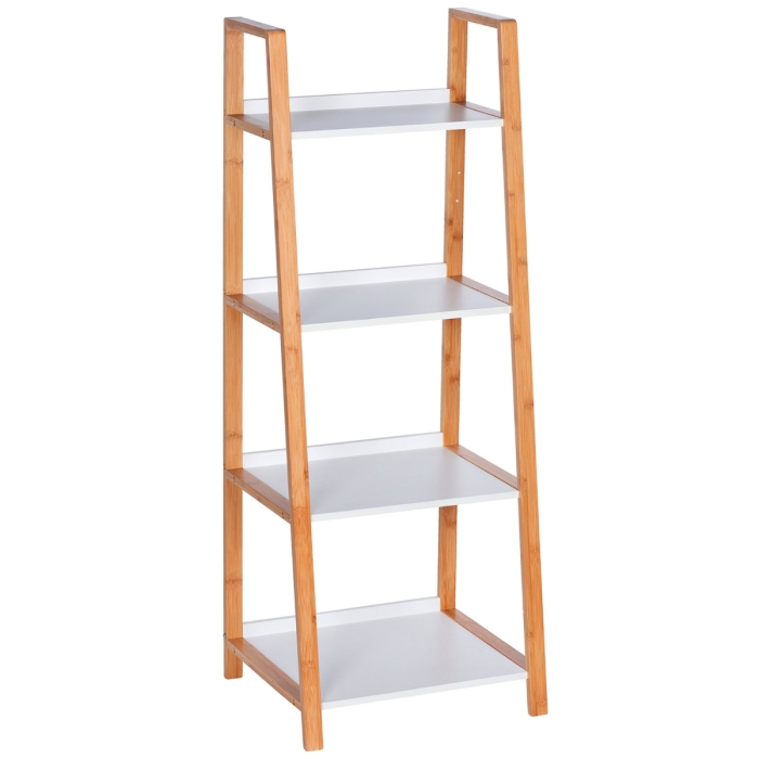 Regal Finja 4 Etagen ✓ im trendigen Scandi-Style ✓ Regal mit 4 Ablageböden ✓ Maße (B x H x T): 43 x 112 x 36 cm ✓ aus hochwertigem Bambus und MDF-Böden ✓ vielseitig einsetzbar in Bad, Küche, Diele, Wohnzimmer und im gesamten Haushalt