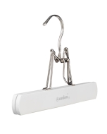 Rockbügel pieperconcept Rock-Jon ✓ Hosen- und Rockbügel mit zwei Clips ✓ in der Farbe weiß erhältlich ✓ die Bügelbreite beträgt 40 cm ✓ Haken 3,4 mm silber vernickelt ✓ Kleiderbügel design by union ✓ praktischer Bügel, zusammenklappbar ✓ auch als Reisebügel geeignet