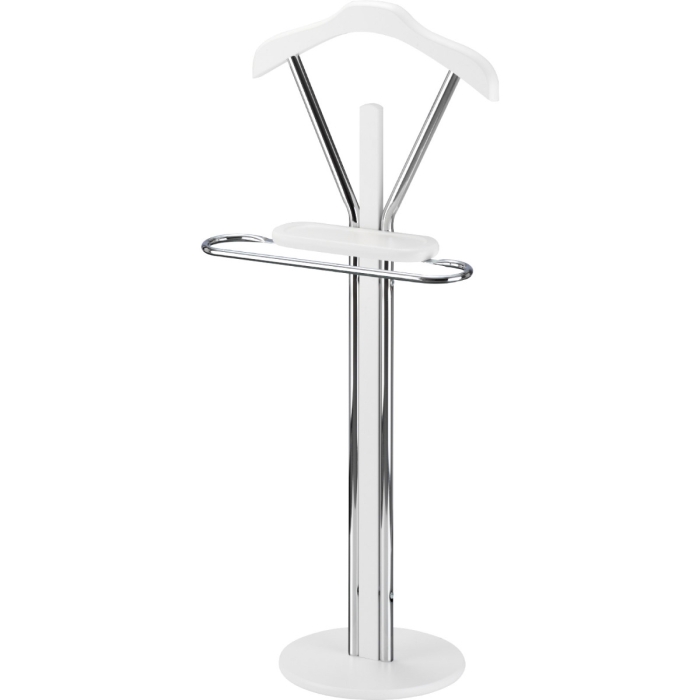 Stummer Diener pieperconcept Cobra weiß - Anzugständer in weiß - Metallteile chromglänzend, oder Metall matt - erhältlich in natur, nussbaum, weiß und silber - Maße: Höhe 107 cm, Breite 47 cm, Tiefe 32 cm - mit Schale als Ablagefläche - massives Buchenholz garantiert Stabilität und Langlebigkeit