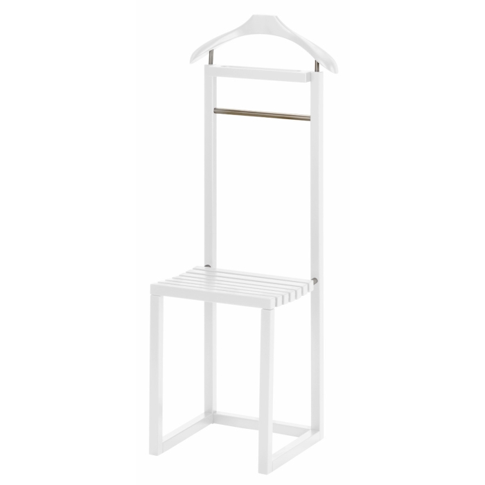 Stummer Diener pieperconcept Ravenna weiß ✓ die Sitzhöhe beträgt 46 cm ✓ die Metallteile sind vernickelt ✓ in der Farbe weiß lackiert ✓ hohe Stabilität und Langlebigkeit ✓ aus massivem Buchenholz gefertigt ✓ Höhe 115 cm, Breite 45 cm, Tiefe 34 cm ✓ Herrendiener mit integrierter Sitzfläche