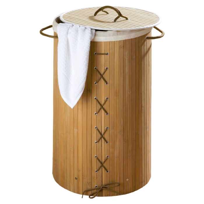 Wäschesammler Bamboo natur ✓ Wäschesack bei 30°C waschbar ✓ Wäschesack aus100 % Baumwolle ✓ Rahmen aus 100 % Polyester ✓ mit zwei Trageriemen an den Seite ✓ Wäschetruhe mit Deckel als Sichtschutz ✓ das Fassungsvermögen beträgt 55 Liter ✓ Abmessungen (B/T x H): Ø 35 x 60 cm