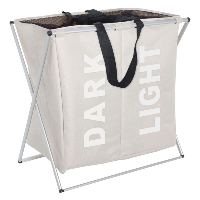 Wäschesammler Duo beige ✓ leichtes und stabiles Aluminium-Gestell ✓ platzsparend zusammenfaltbar, verstaubar ✓ praktische Netzabdeckung mit Zugband-Verschluss ✓ aus strapazierfähigem Polyestergewebe ✓ stabiler Trageriemen zum bequemen Transport ✓ einfache Vorsortierung Ihrer Wäsche ✓ das Fassungsvermögen beträgt 120 Liter ✓ Abmessungen (B x H x T): 59 x 57 x 38 cm