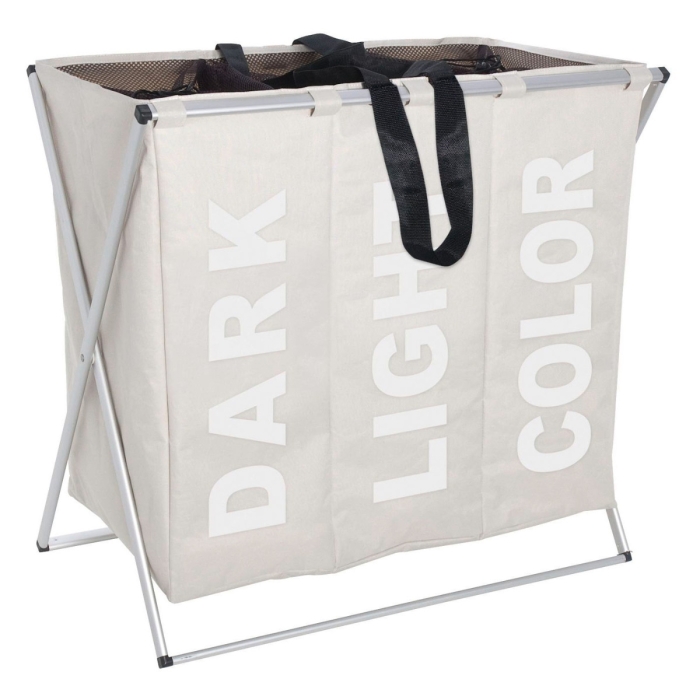 Der moderne Wäschesammler Trio in elegantem, trendigem Beige bringt Stil ins Bade- oder Schlafzimmer. Er bietet jede Menge Platz für die Wäsche bis zum nächsten Waschgang. Durch die drei praktischen Fächer mit je 43 Litern Fassungsvermögen kann die Wäsche vorab ganz einfach nach Farben oder Temperatur getrennt werden. Der Wäschekorb ist aus hochwertigem, strapazierfähigem Polyestergewebe gefertigt. Die stabilen Trageriemen eignen sich zum bequemen Transport der Wäsche. Bei Nichtgebrauch kann der Sammler zusammengefaltet und platzsparend aufbewahrt werden.