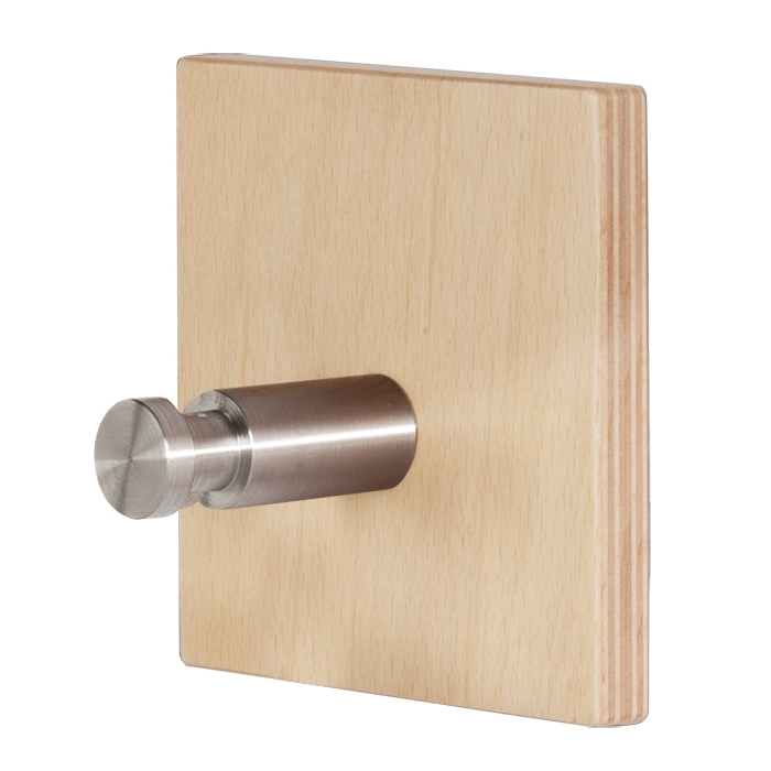 Wandhaken WOODY buche ✓ Haken aus mattem Edelstahl ✓ geeignet als Einzelgaderobe ✓ Basis aus Buchenfunier, natur ✓ Abmessungen: Höhe 10 cm, Breite 10 cm, Tiefe 5,5 cm