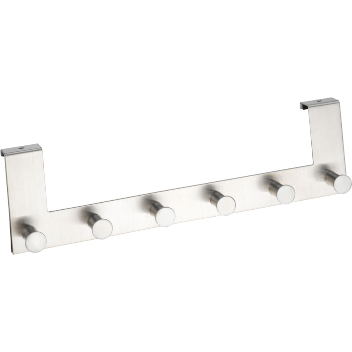 Edelstahl Türgarderobe Wenko Celano ✓ schwere, massive Qualität, satiniert ✓ problemlos einzuhängen ✓ für Türfalzstärken von 2 cm zu verwenden ✓ Tür lässt sich leicht schließen ✓ aus rostfreiem, mattiertem Edelstahl ✓ Maße (B x H x T): 39 x 11 x 5,5 cm ✓ sechs Haken zum Aufhängen von Jacken oder Handtüchern