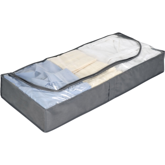 Unterbettkommode Wenko Libertà ✓ Material (100% Polypropylen / PP) ✓ Maße 107 cm x 46 cm x 16 cm ✓ Ideal unter Bett oder Schrank platzierbar ✓ Gewicht der Unterbettkommode ca. 150g ✓ aus atmungsaktivem, hochwertigem Vlies-Material ✓ für die platzsparenden Aufbewahrung von Textilien ✓ mit großem Sichtfenster und 3-Seiten Reißverschluss