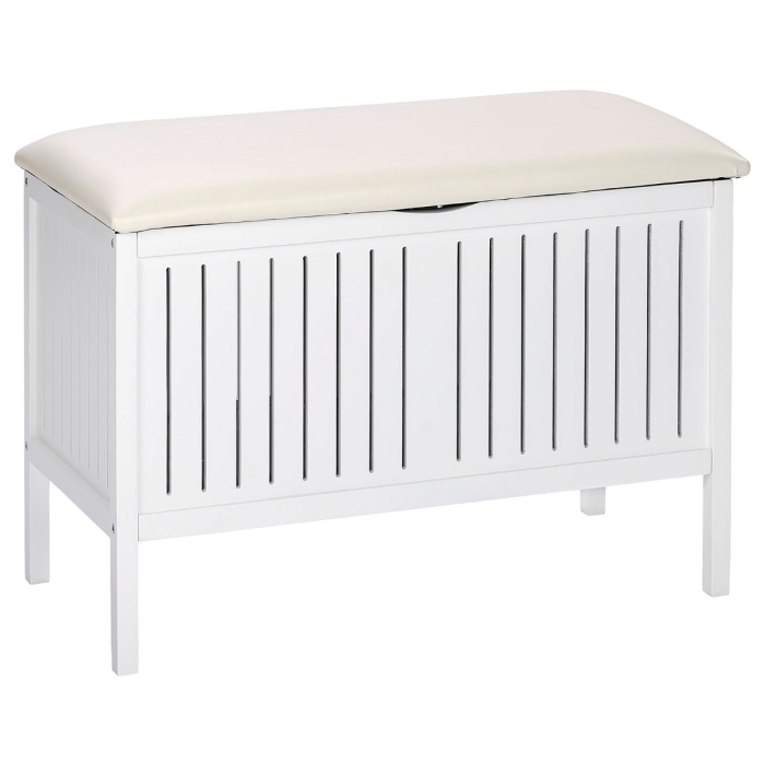 Wohnbank Wenko Oslo weiss ✓ aus massivem Echtholz ✓ Wäschetruhe mit Deckel ✓ in trendigem weiß lackiert ✓ viel Stauraum für Wäsche ✓ mit gepolsterter Sitzfläche ✓ das Gewicht beträgt ca. 6,80 kg ✓ Maße (B x H x T): 78 x 55 x 39 cm ✓ ideal zur Wäscheaufbewahrung
